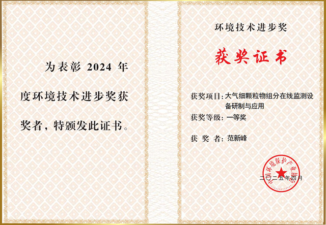 中國環(huán)境保護(hù)產(chǎn)業(yè)協(xié)會(huì)根據(jù)《環(huán)境技術(shù)進(jìn)步獎(jiǎng)獎(jiǎng)勵(lì)辦法(試行)》的規(guī)定,經(jīng)過提名、初評(píng)、終評(píng)、審定、公示等程序后,于2025年6月發(fā)布了2024年度環(huán)境技術(shù)進(jìn)步獎(jiǎng)獲獎(jiǎng)名單。其中12個(gè)項(xiàng)目獲得一等獎(jiǎng),27個(gè)項(xiàng)目獲得二等獎(jiǎng)。我公司與中國環(huán)境監(jiān)測(cè)總站、北京大學(xué)等單位共同申報(bào)的“大氣細(xì)顆粒物組分在線監(jiān)測(cè)設(shè)備研制與應(yīng)用”項(xiàng)目榮獲一等獎(jiǎng)。